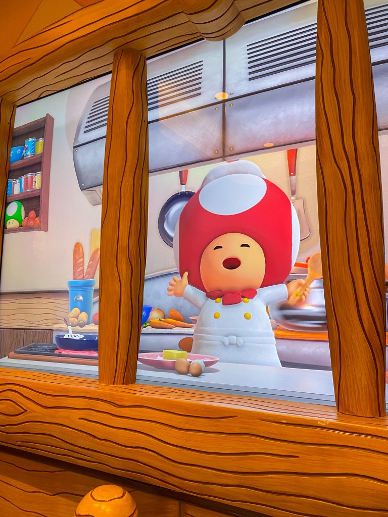 From the Fire Flower Spaghetti & Meatballs (surprisingly spicy) to the Luigi “Burger” (Pesto Grilled Chicken) and the charmingly oversized egg-shaped croutons on Yoshi’s salad, you can’t really go wrong with any of the menu options. They may not be the most adventurous cuisines, but they’re undeniably good and offer a satisfying glimpse into life in the Mushroom Kingdom, thanks to Chef Toad.