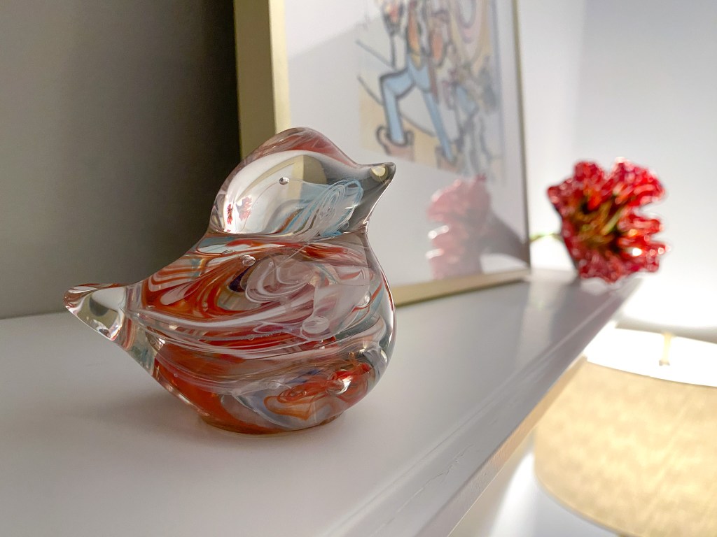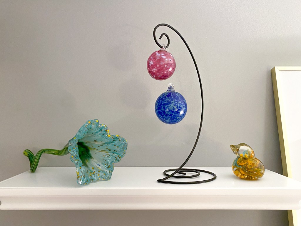 Mike, of course, blew his ornament perfectly on the first try. Me, on the other hand… I blew the glass too hard at first, then not hard enough. I ended up with a smaller ornament, but I love it just the same ❤️