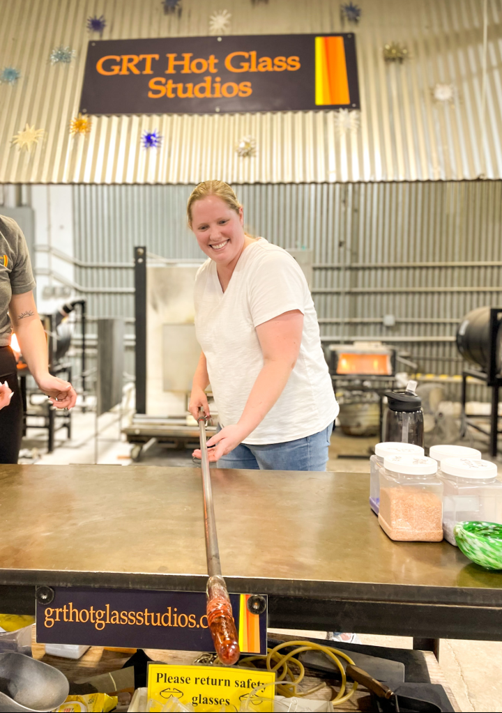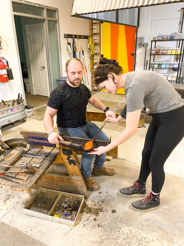 So when a family member gifted us a private hot glass lesson at GRT Hot Glass Studios in Indianapolis, we knew it’d be a date we’d never forget!