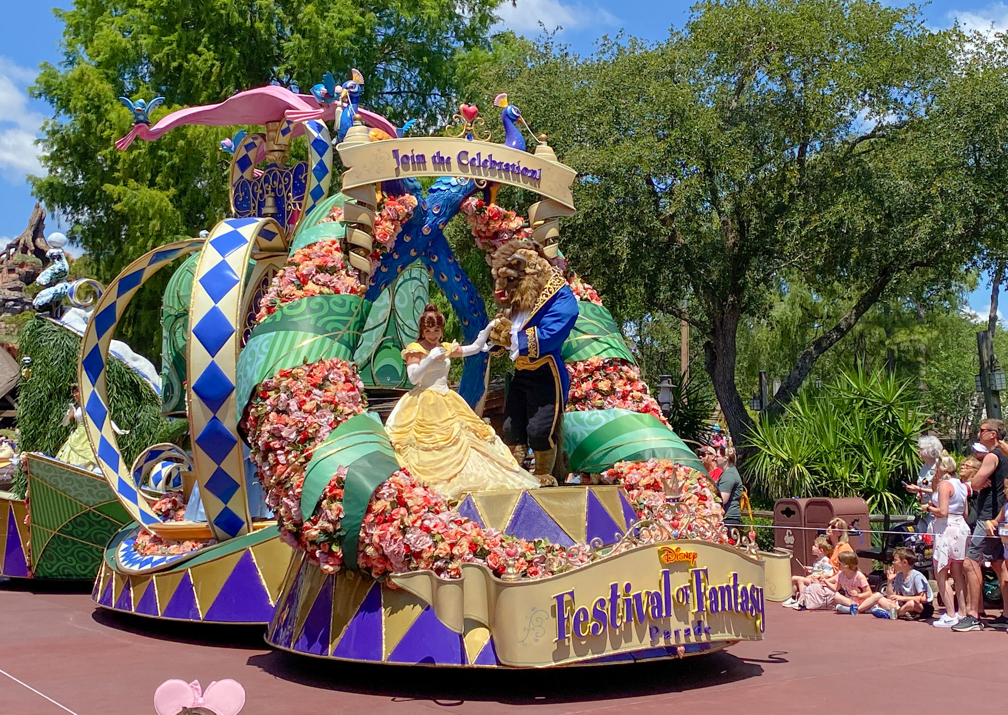 After riding Jungle Cruise, we happily stumbled upon the Festival of Fantasy Parade. The cheerful music and beautiful floats carrying all of our favorite Disney characters made us smile ear to ear. While we hadn’t planned to see the parade, I’m thrilled we did! It was absolutely a highlight of our trip. If you don’t have time or don’t want to meet Disney characters in a one-on-one setting, this is a great way to see them all in one place!