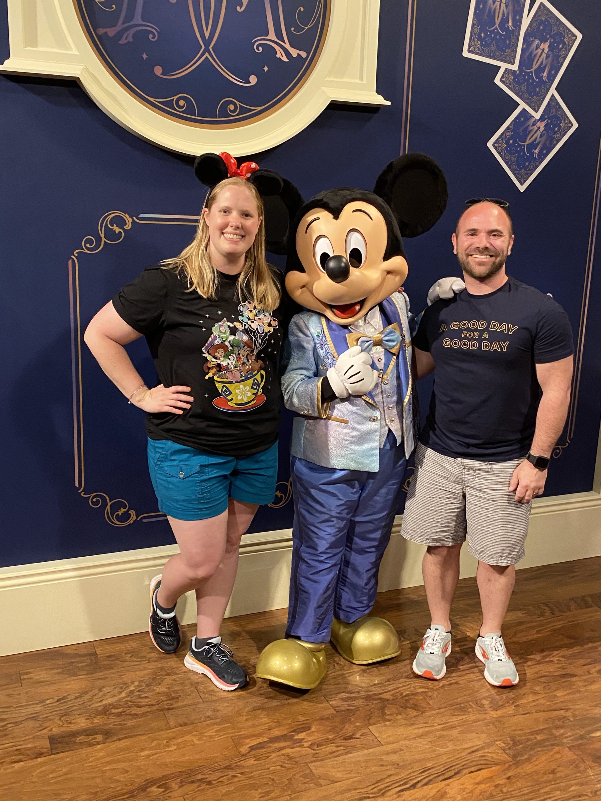 I’ve met one of my favorite singers before and I’m not gonna lie… I was just as excited/nervous meeting Mickey. (Why was I nervous to meet a cast member dressed in costume?!) We were totally fangirling when we met the mouse, himself, in his “rehearsal room” at Magic Kingdom’s Town Square Theater. My favorite moment was when Mickey started humming “Happy birthday” to me after Mike told him we were celebrating my 30th!