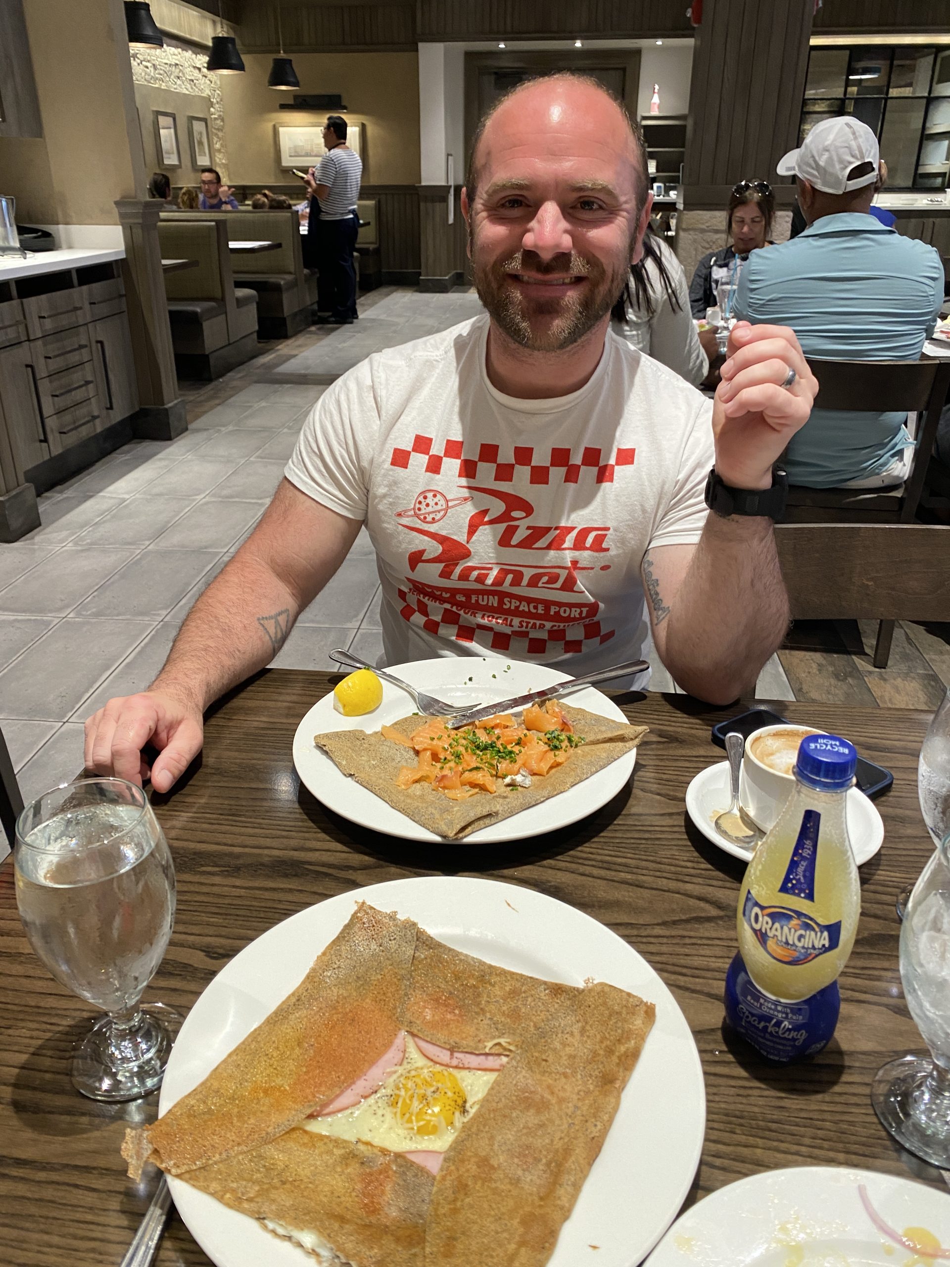 Speaking of which… we treated ourselves again to a delicious French lunch at La Crêperie de Paris at EPCOT. The Prix Fixe Menu included a choice of soup or salad, one galette (essentially a savory crêpe), a beverage and a dessert crêpe.