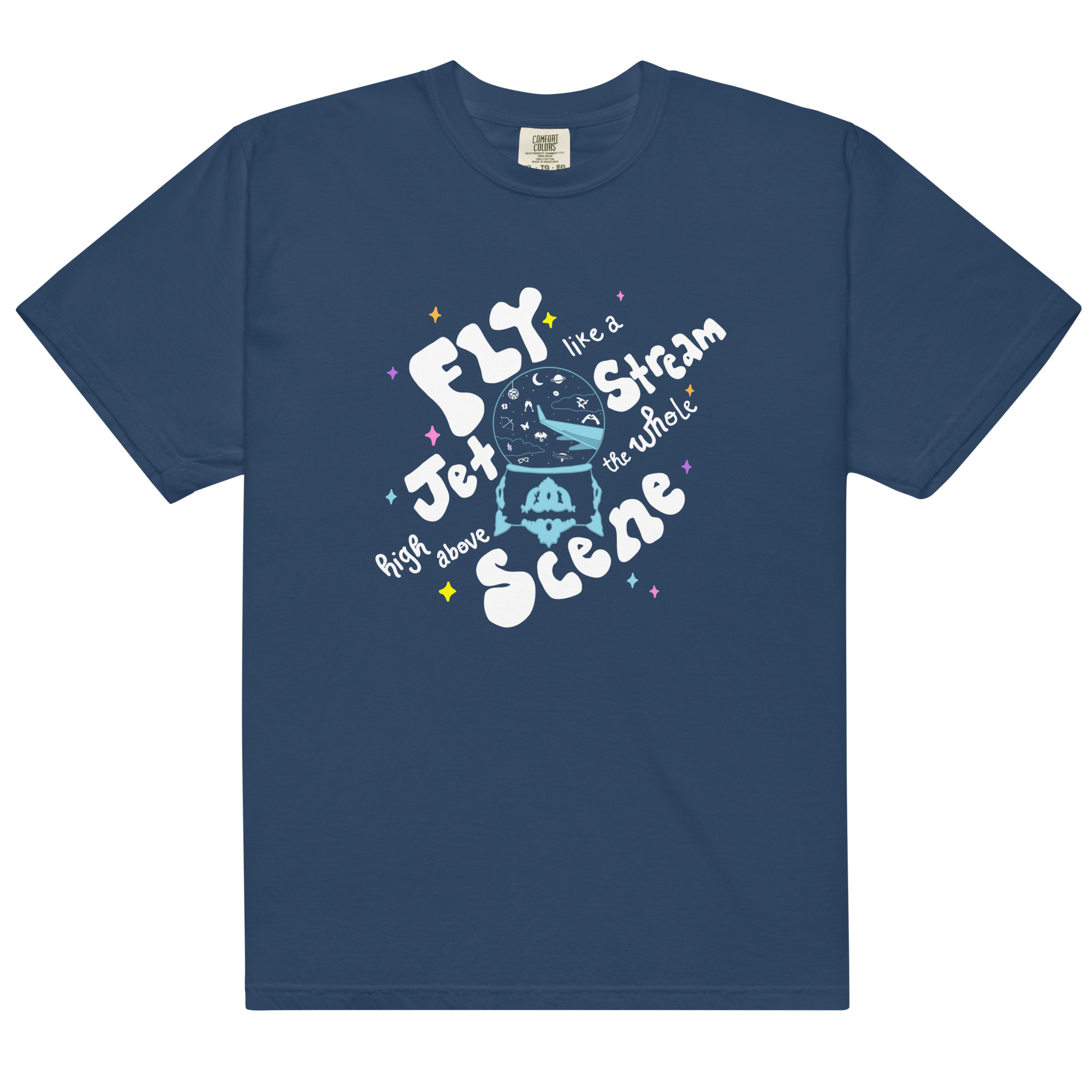 Step into our whimsical world where ✨ travel meets Taylor ✨ with this Comfort Colors tee full of Swiftie Easter eggs! The tee’s unique design captures the magic of the iconic Lover snow globe, but with a twist: Imagine you’re looking out an airplane window ✈️ As you gaze out the window and through the snow globe, can you recognize all the symbols of Taylor’s eras?